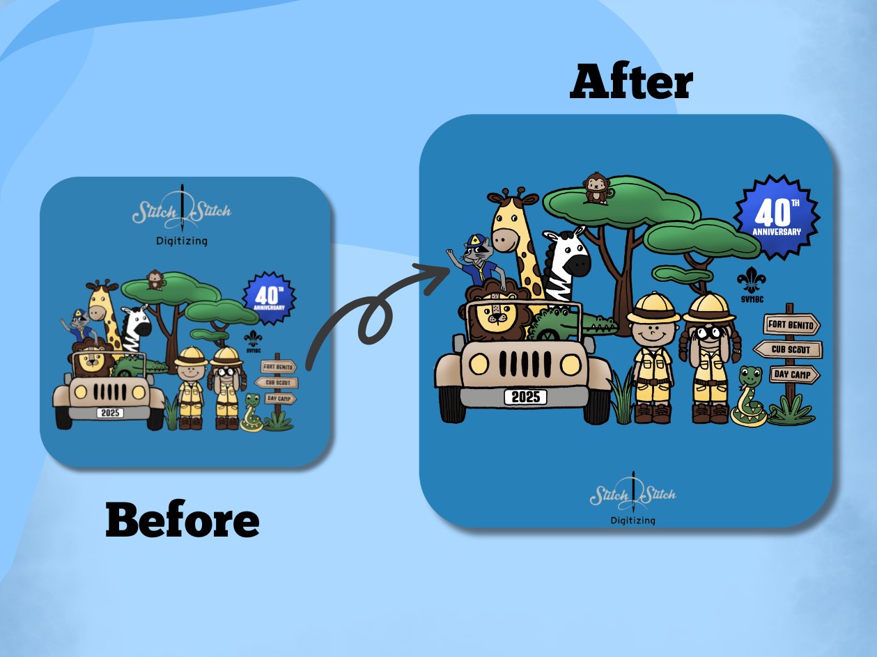Our Raster to Vector Conversion service ensures your designs are crisp, scalable, and production-ready. Raster images (JPEG, PNG, BMP, etc.) often lose quality when resized, but with our professional conversion, every line and detail is redrawn into a high-quality vector format. This makes your artwork perfect for embroidery , screen printing, vinyl cutting, and other applications where precision matters. We focus on accuracy, clean outlines, and smooth color separations, delivering results that maintain the originality of your design while enhancing its clarity and usability.